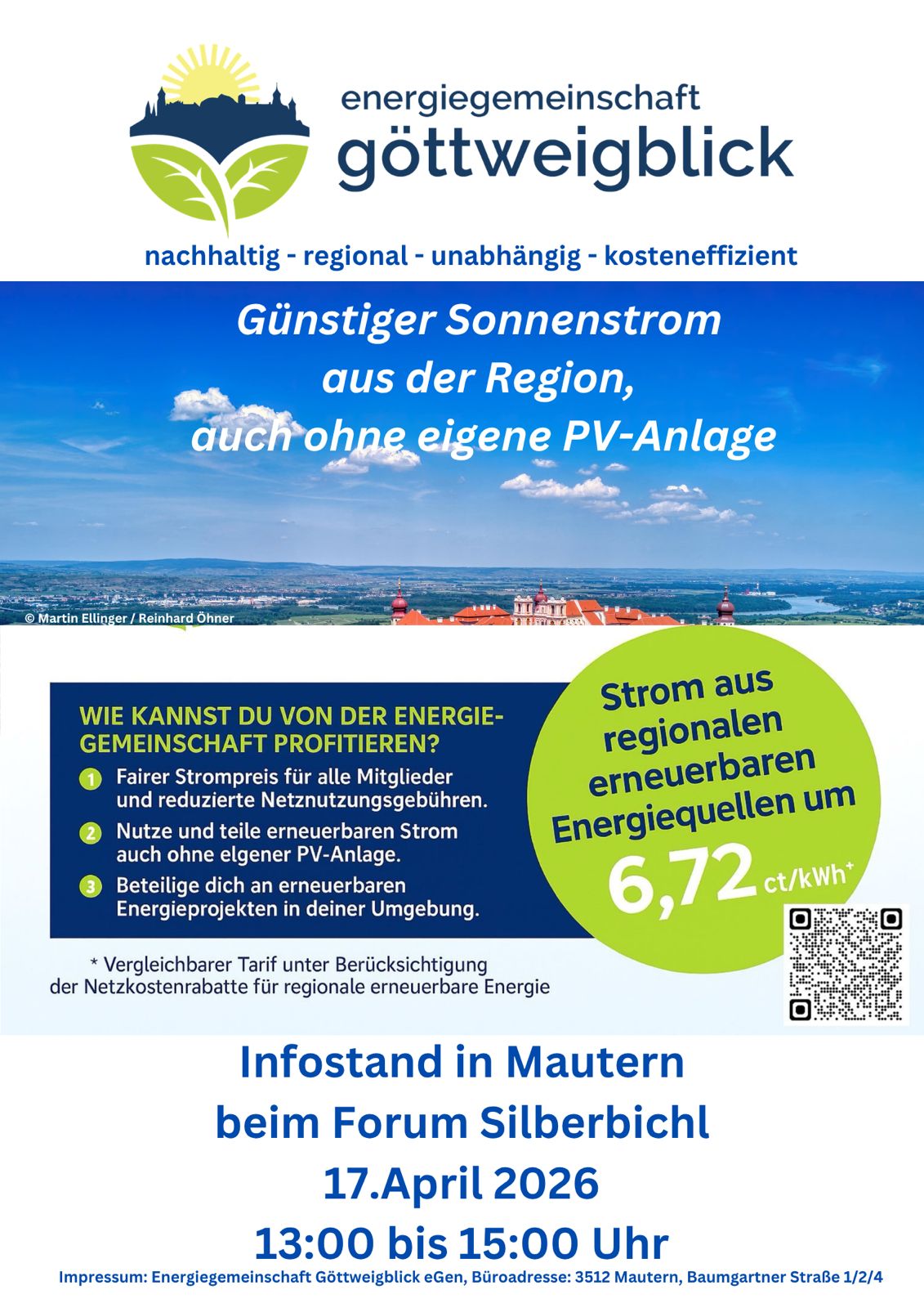 Neben unseren Info-Abenden in Krems hält der April zwei weitere Möglichkeiten bereit, sich über unsere EEG Göttweigblick und die neuen Tarife zu informieren: